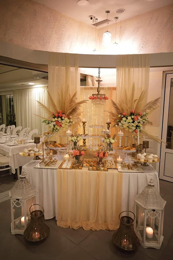 Summer in Santorini has a way of making even the simplest moments feel intentional and Emily and Tom’s celebration captured that spirit from the very first glance. Flowery Santorini styled the long wooden table with white roses, soft gypsophila and generous foliage that trailed over the edges, creating a romantic line of greenery that matched...