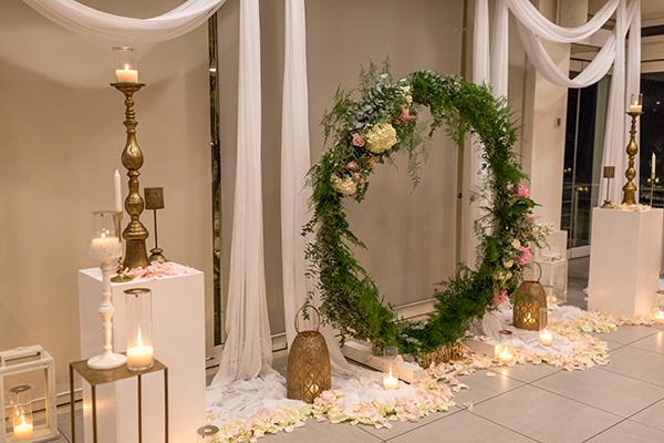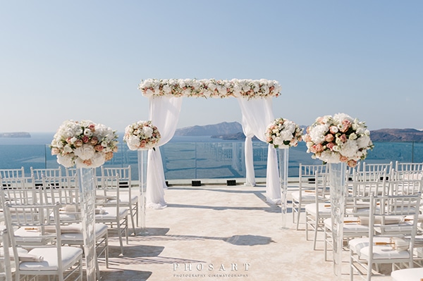 A serene Santorini wedding filled with roses and heartfelt touches | Emily & Tom