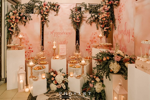 Summer in Santorini has a way of making even the simplest moments feel intentional and Emily and Tom’s celebration captured that spirit from the very first glance. Flowery Santorini styled the long wooden table with white roses, soft gypsophila and generous foliage that trailed over the edges, creating a romantic line of greenery that matched...