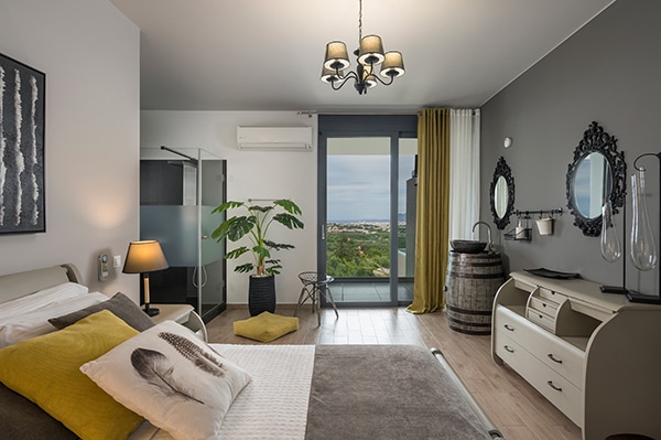 OliveNest Villa Chania is a 500 square meters private residence bath which attract the newlyweds for many reasons. The residence includes 9 bedrooms, 7 bathrooms of which 3 are luxurious suites with their own bath. The suites are all spacious and airy and many of the bedrooms have queen size beds, a sitting area and a kitchen that promise an unforgettable stay and the most relaxed moments for you and your other half. Furthermore, the outside bar & bbq, the jacuzzi, the sauna, the outside cinema and the helipad promise to satisfy your every need offering you all the comforts.