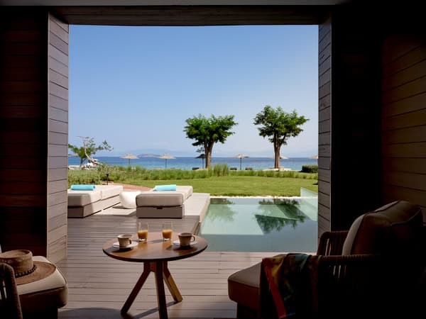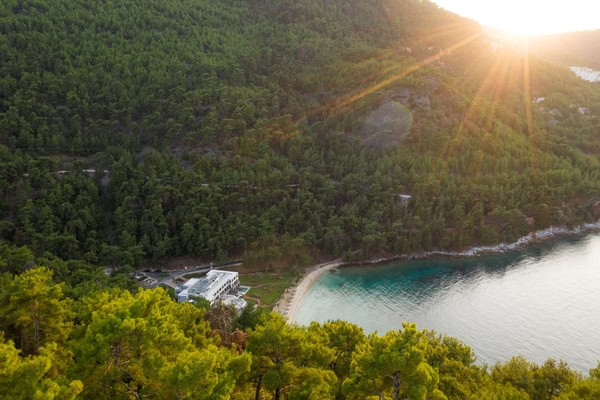 Opened in June 2021, Vathi Cove is a boutique luxury resort on the island of Thassos. We’re perfect for nature lovers as the lush green pine forest, the bright white sandy beach and the transparent turquoise waters which encircles the resort, is a protected area and noted as an outstanding snorkelling site.
