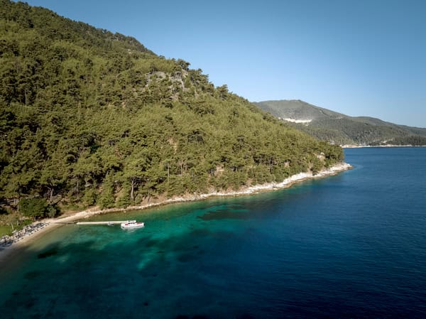 Come, kick off your shoes and let us tell you a story . . . Once upon a time there was a sandy white beach, with crystal clear water, like an emerald drop of paradise wrapped in soft white sands, surrounded by a vibrant, unspoilt pine forest, lapped by warm turquoise waters and hidden in the heart of an incomparable natural beauty, protected by NATURA 2000. Vathi Cove is that place. That time is now, and this is our story.