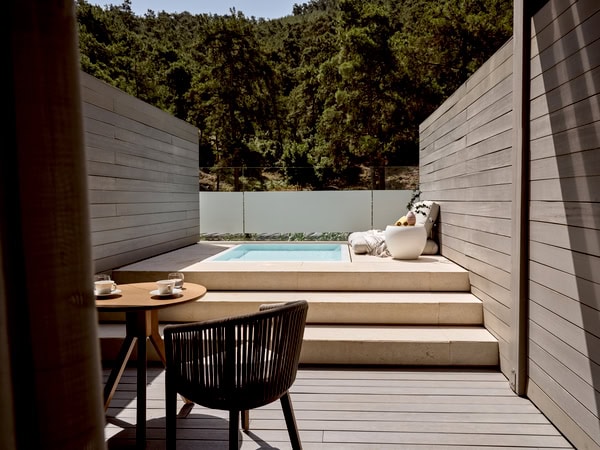 Opened in June 2021, Vathi Cove is a boutique luxury resort on the island of Thassos. We’re perfect for nature lovers as the lush green pine forest, the bright white sandy beach and the transparent turquoise waters which encircles the resort, is a protected area and noted as an outstanding snorkelling site.