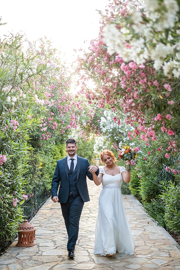 An alfresco summer wedding with yellow flowers at the Meleagris Estate | Eleni & Vaggelis