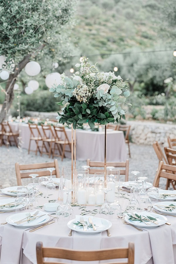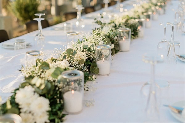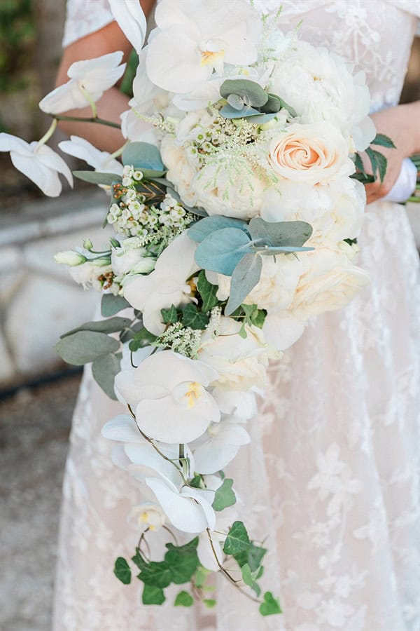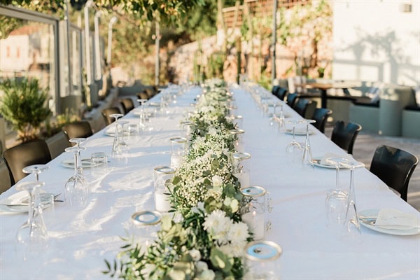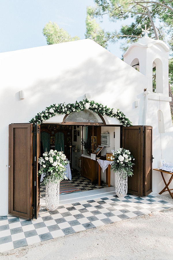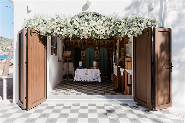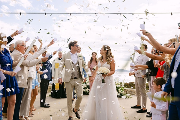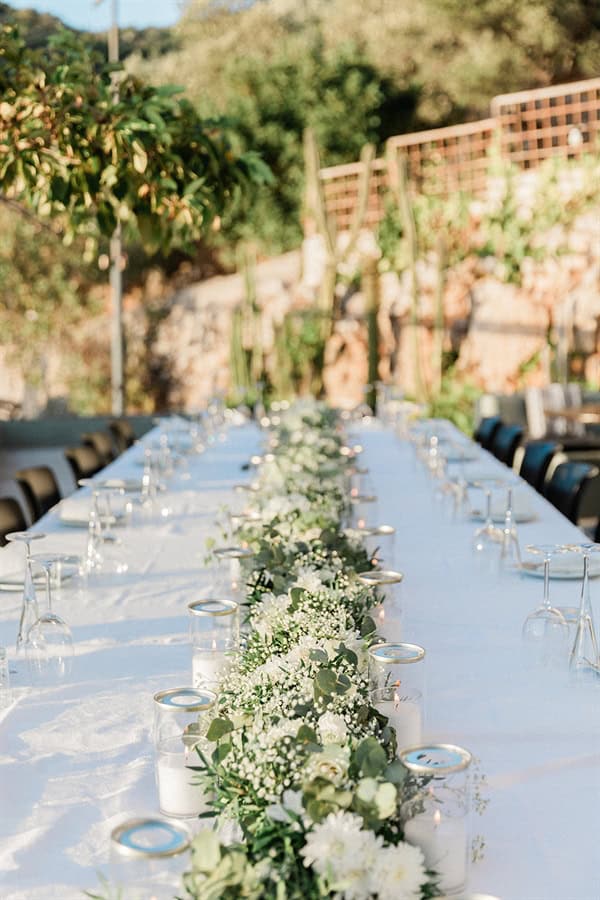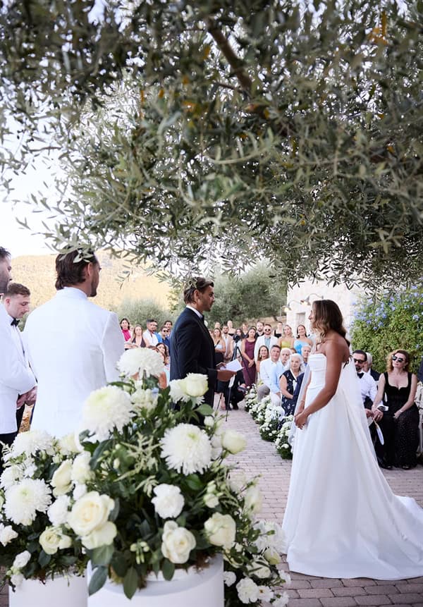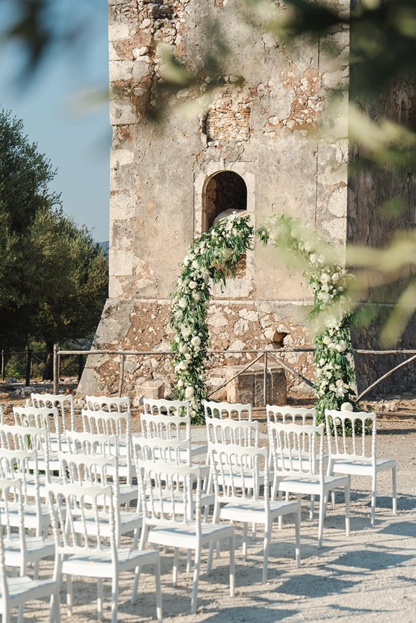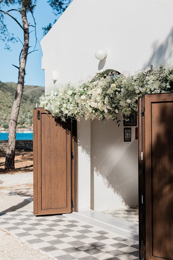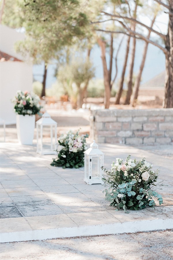 Outdoor summer wedding in Ithaki with romantic white flowers│ Aliki & Jonathon