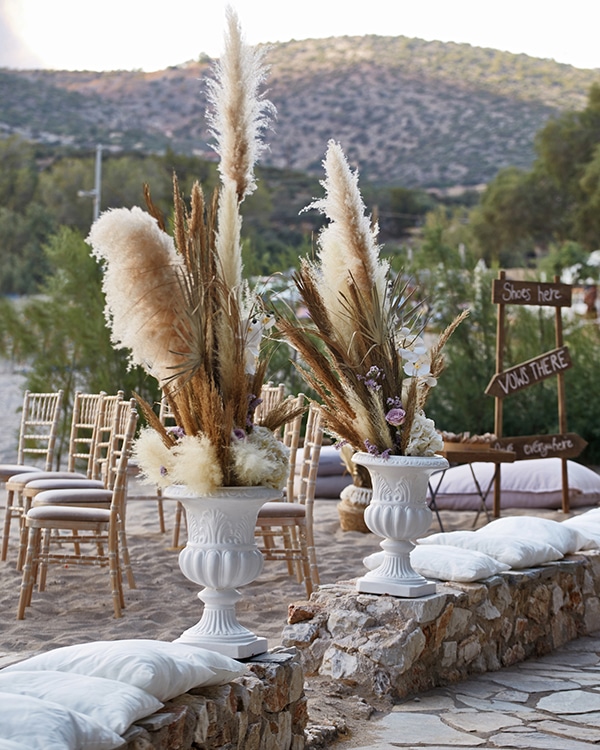 On the enchanting island of Serifos, where the raw beauty of the landscape meets the magic of thoughtful styling, the Koumpares team brought every detail to life, creating a setting that felt straight out of a dream. A long wooden table was placed in a naturally charming spot and adorned with a striking floral runner...