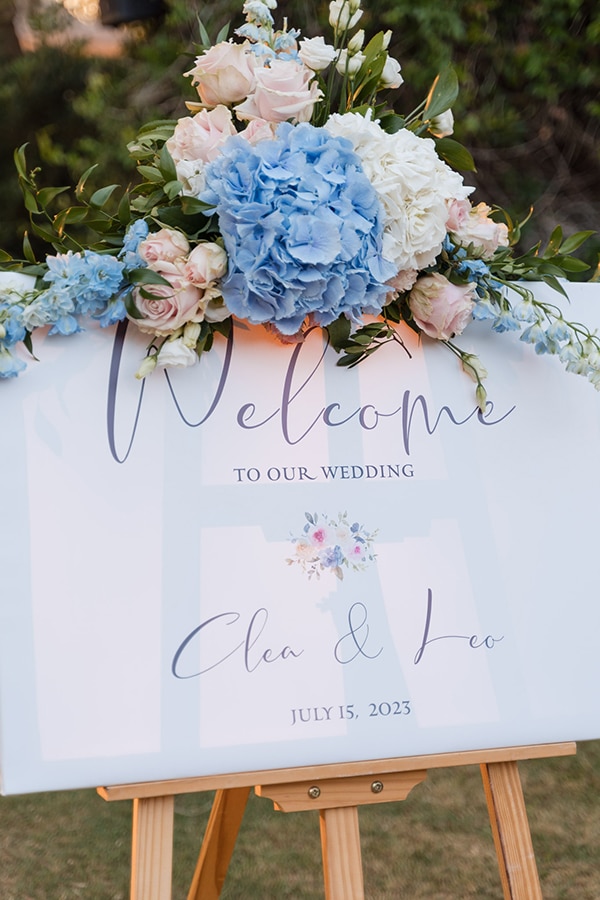 Rustic chic wedding inspiration with bougainvillea and soft blue details