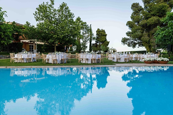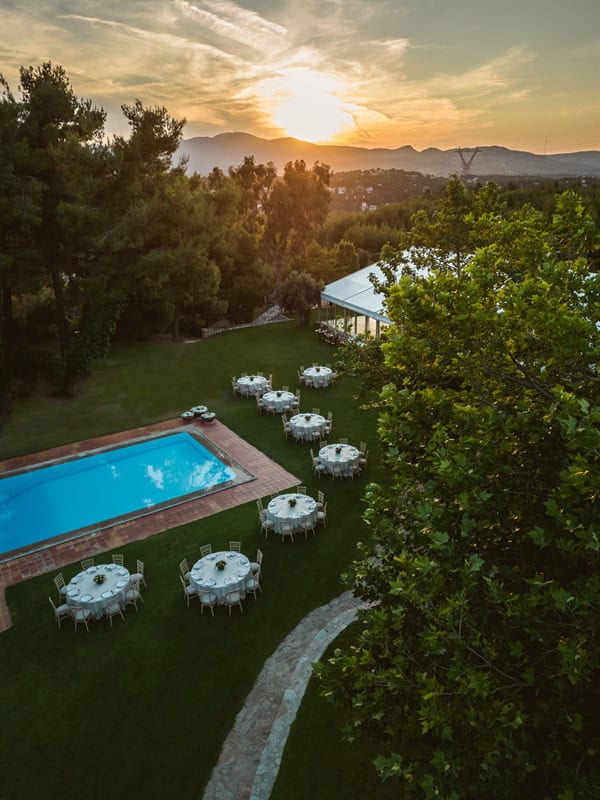 Immersed in nature, only a breath away from Athens (Stamata Attica) and with the marvelous chapel of St. George, our Estate has numerous outdoors and indoors spaces to host with the utmost care your social event.