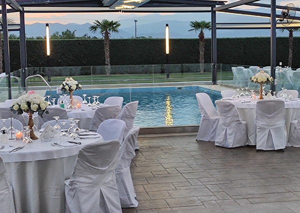 The wonderful outdoor area with the pool is ideal from May to October to host receptions of weddings, christenings, engagements, business-corporate events, dances and children parties, having the opportuning to protect yourselves from bad weather conditions while there is also an indoor hall in operation all year round.