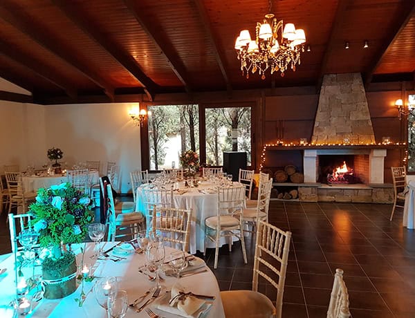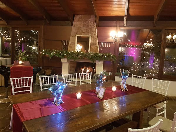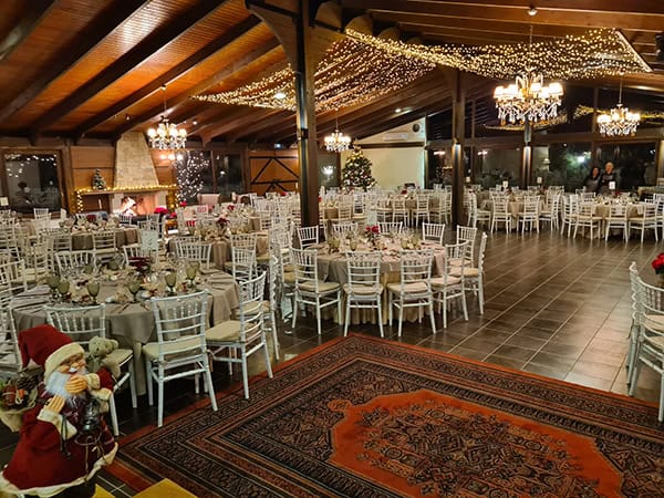 Chalet Velli: Accommodates 300 seated guests and 600 cocktail-style guests. A beautiful chalet built with Scandinavian standards, ideal for winter festive events, accompanied by the warmth of our stone-built fireplace.