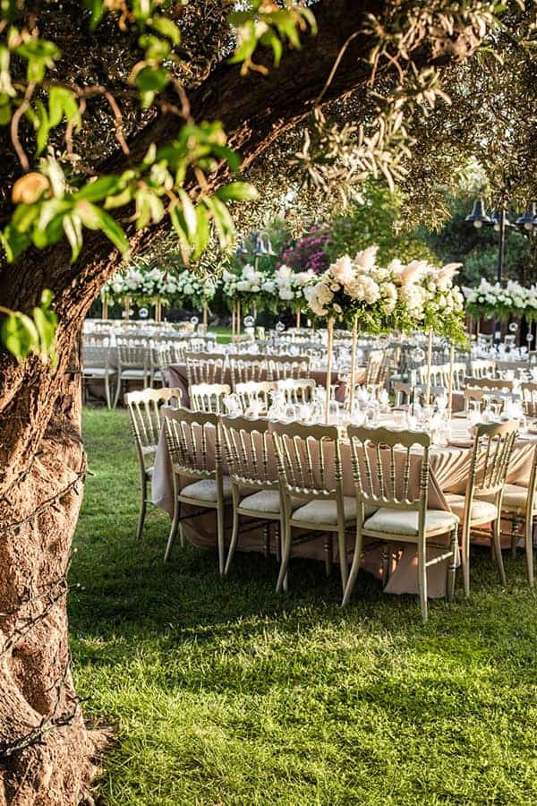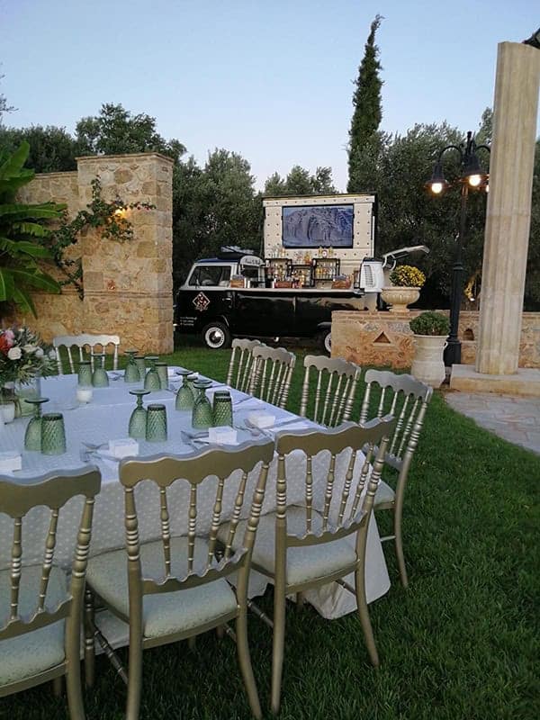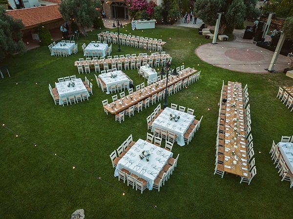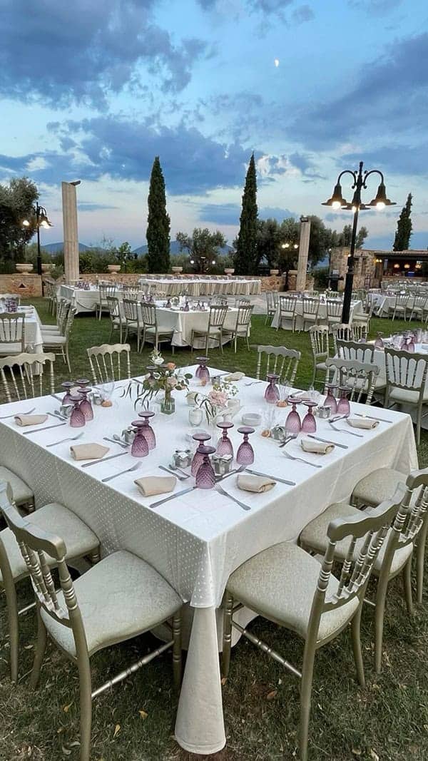 Polihoros Lolou has two indoor and two outdoor spaces, each named after figures from Ancient Greek mythology: Electra and Iokasti. Every area boasts its own distinctive design and architecture, seamlessly blending stone and wood elements with lush greenery and serene water features, including a tranquil lake. This combination creates a warm and inviting atmosphere for your special occasion.