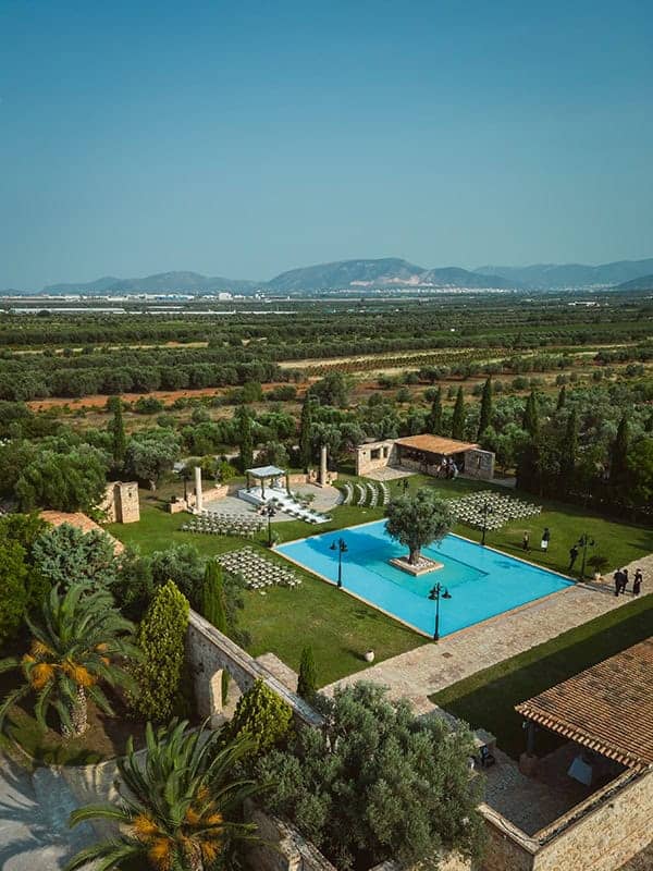 Nestled in the lush green countryside of Paiania, Polihoros Lolou was created to host weddings, baptisms, social gatherings, and corporate events. The estate features two indoor halls, two outdoor spaces, and a charming chapel, making it the perfect setting for your wedding or child’s baptism.