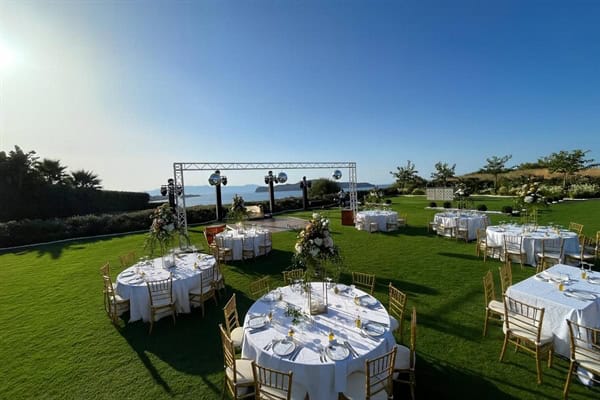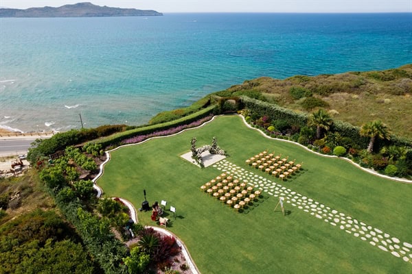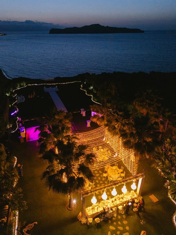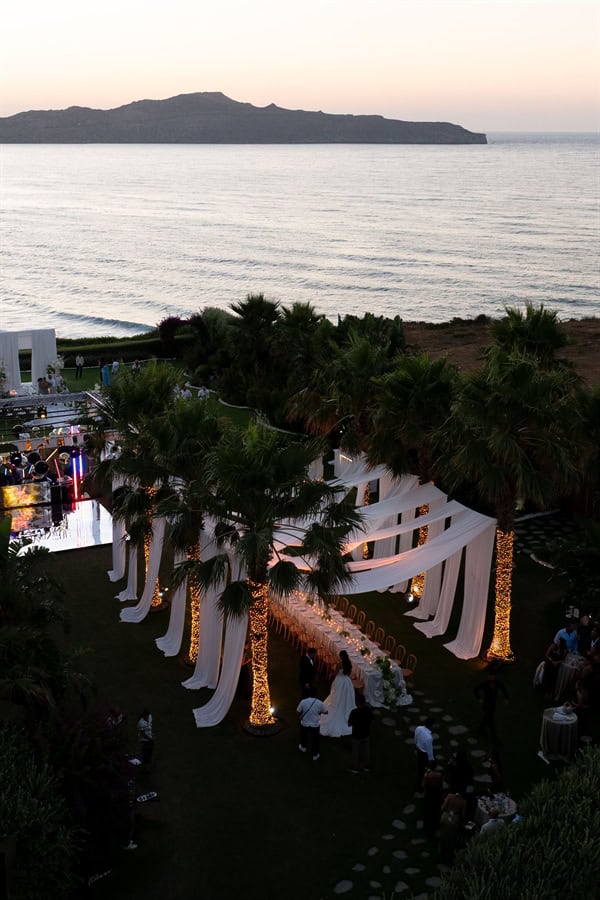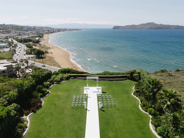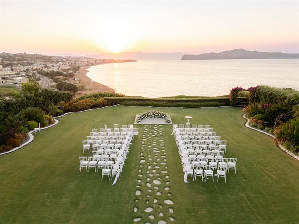 The lush landscape on the hill, the magnificent panoramic view of the Cretan Sea and the tranquillity in the air will become the perfect setting for the most memorable day of your life. The idyllic backdrop of the setting sun is unique and creates a truly romantic ambience that is simply breathtaking.